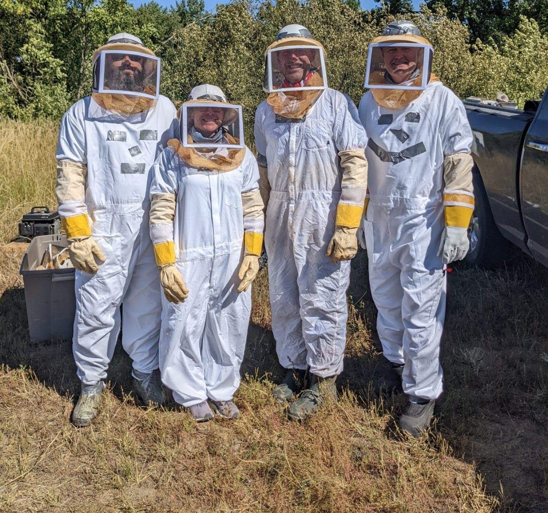 During the leaf blower process, a bee suit is a MUST. Otherwise, they’ll take out their vengeance on you!